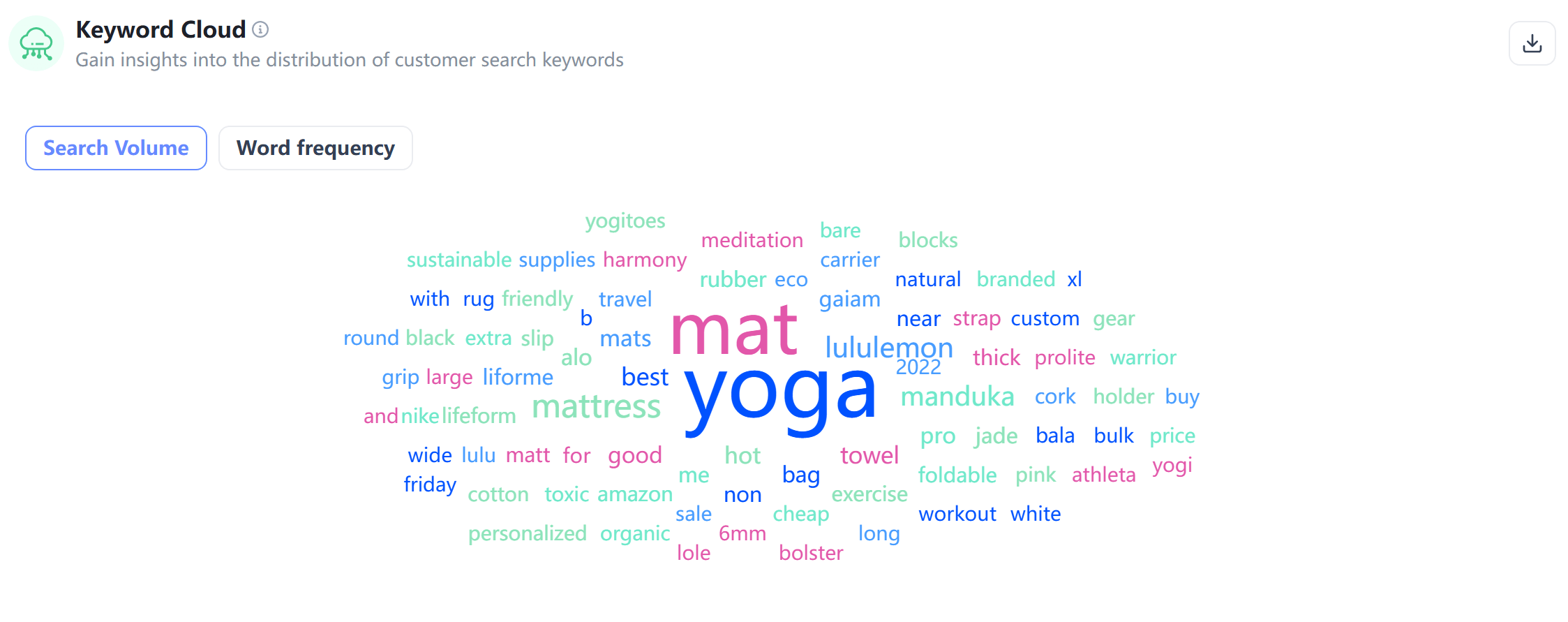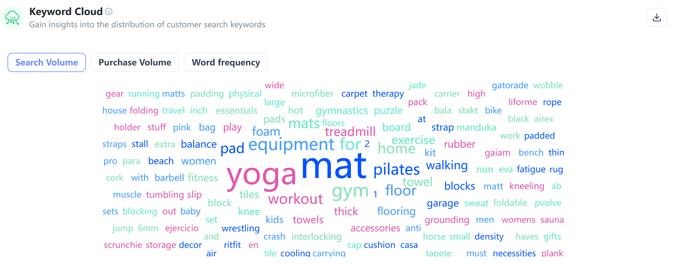 High-frequency terms like "yoga" and "mat" appear repeatedly for a reason.