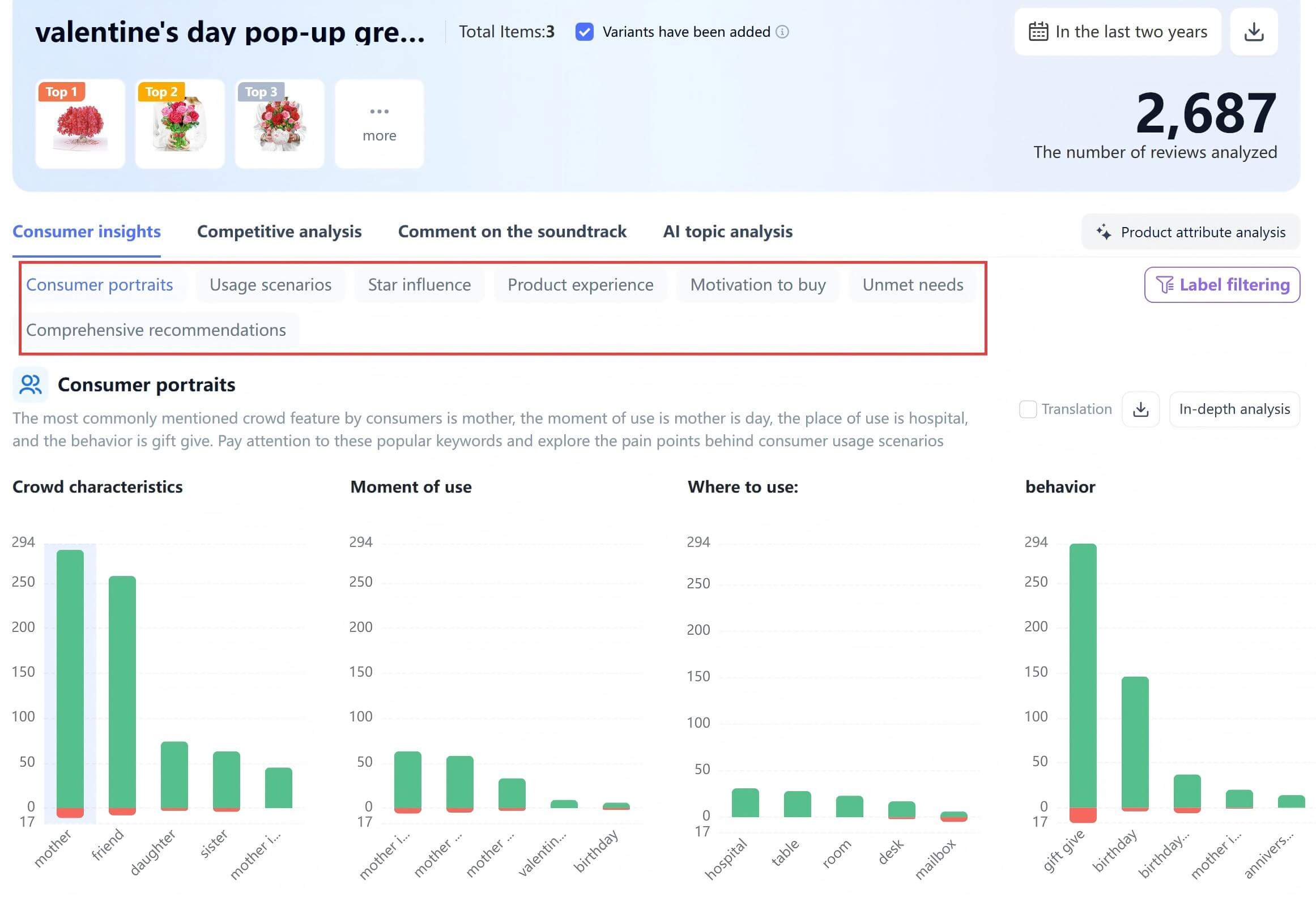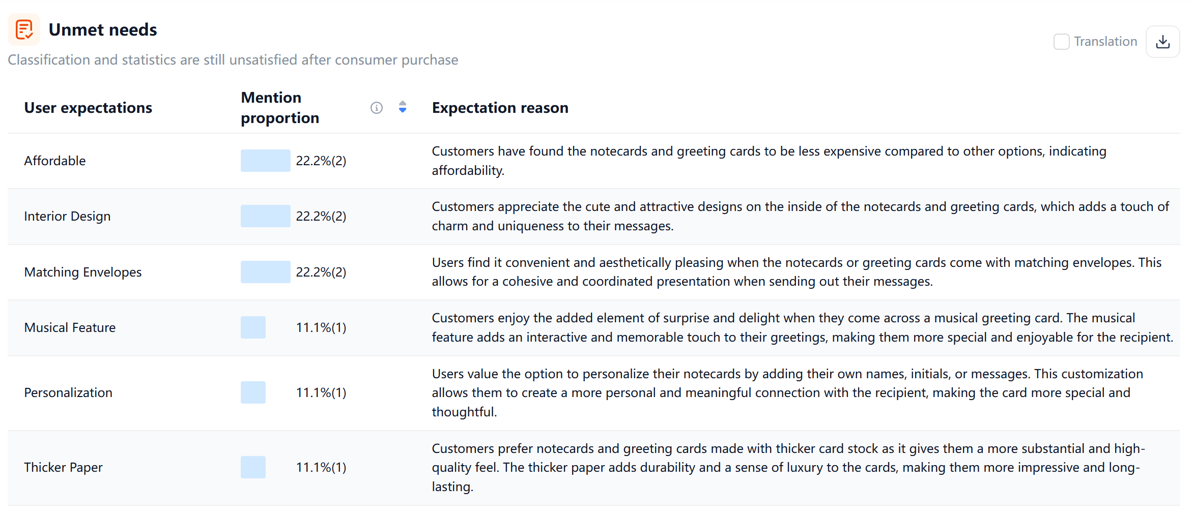 By leveraging VOC AI, we can conduct systematic insights into any target category, transforming the vague goal of "improving user experience" into a concrete, actionable checklist. Let’s take Valentine's Day greeting cards as a prime example: