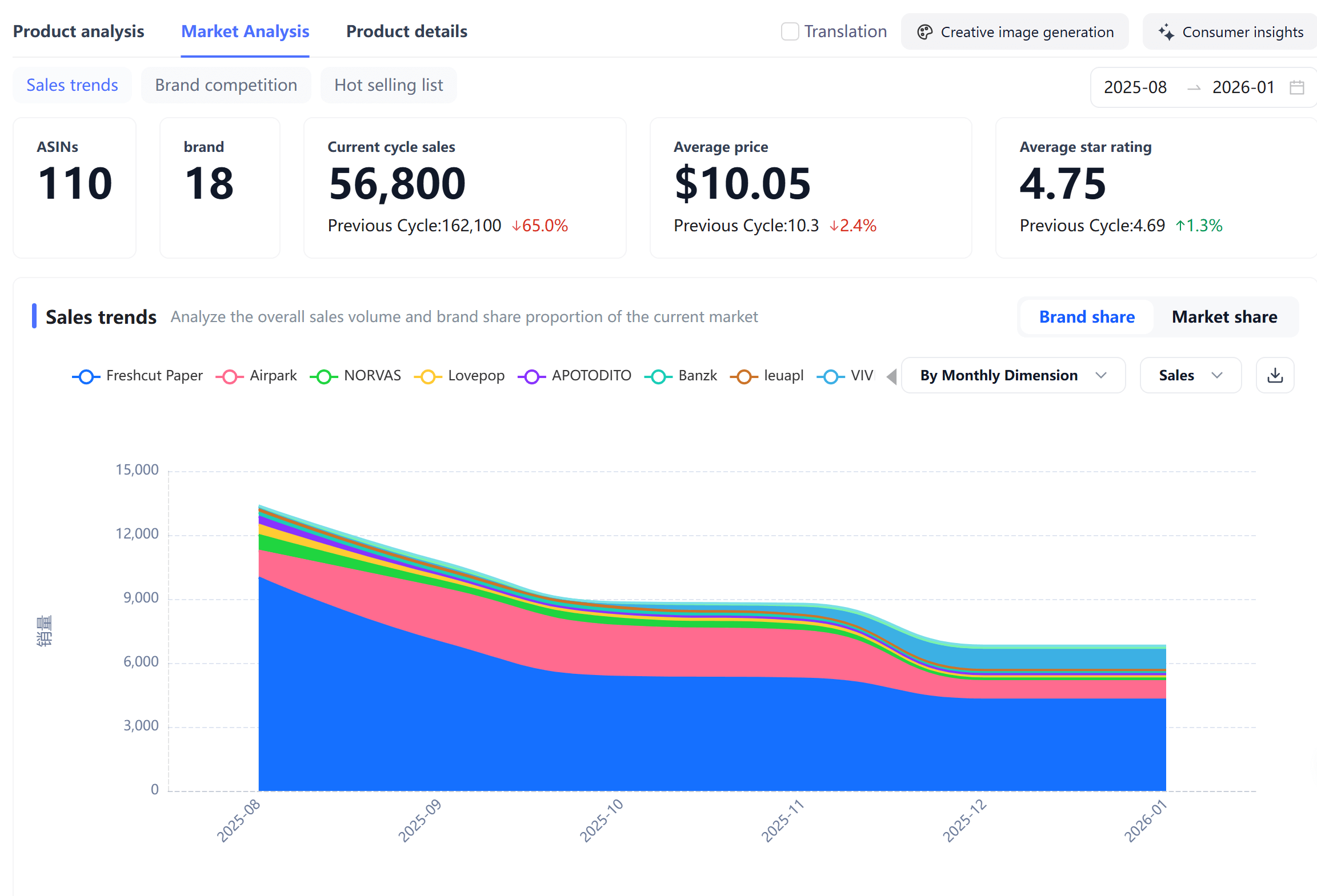 With this baseline established, we can leverage VOC AI for a deeper market analysis: Is the category growing? Is it worth the investment? Who are the top performers, and what exactly is driving their success?