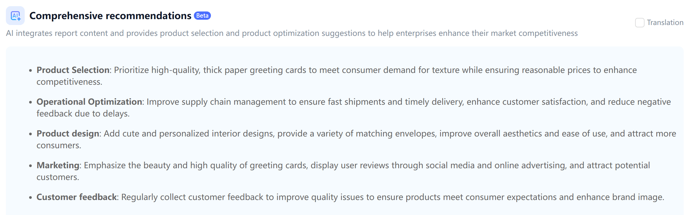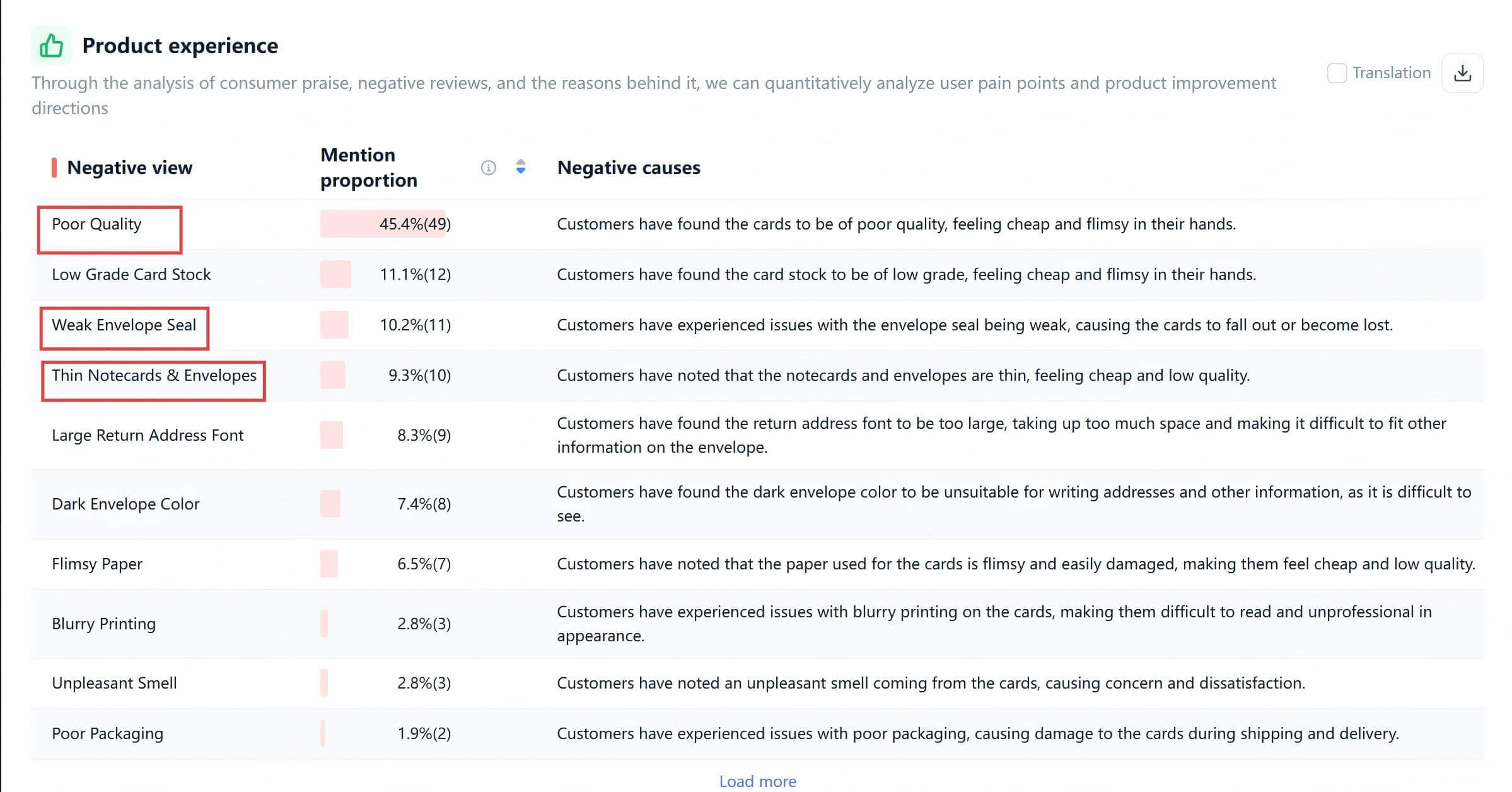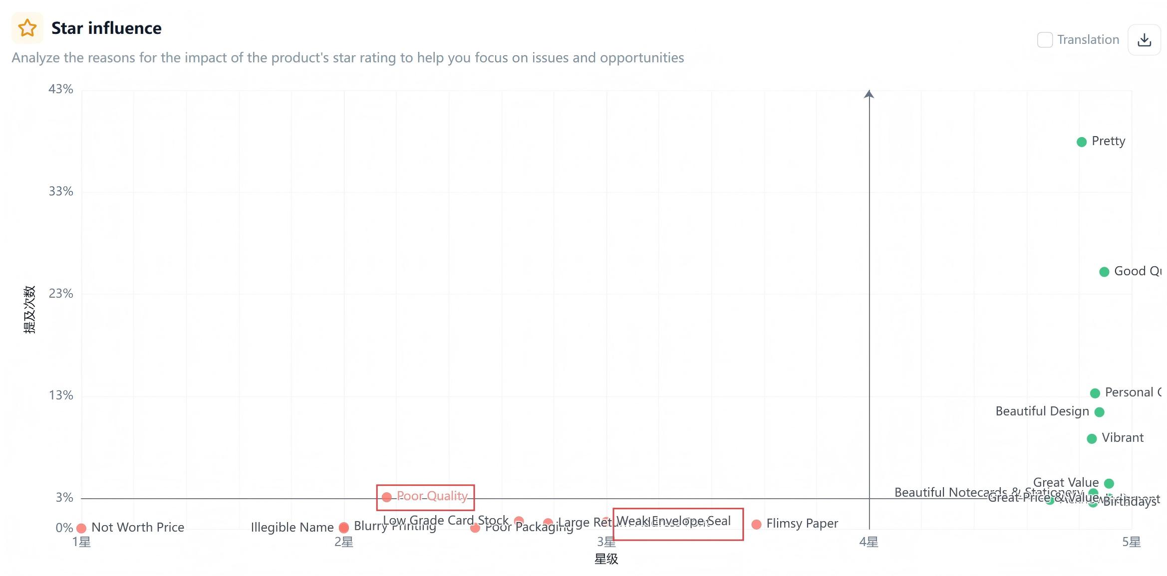 - Case in Point: In the greeting card category, negative reviews rarely target the "design." Instead, they focus on "cheap texture" and "poor sealing." These are concrete, actionable fixes.
