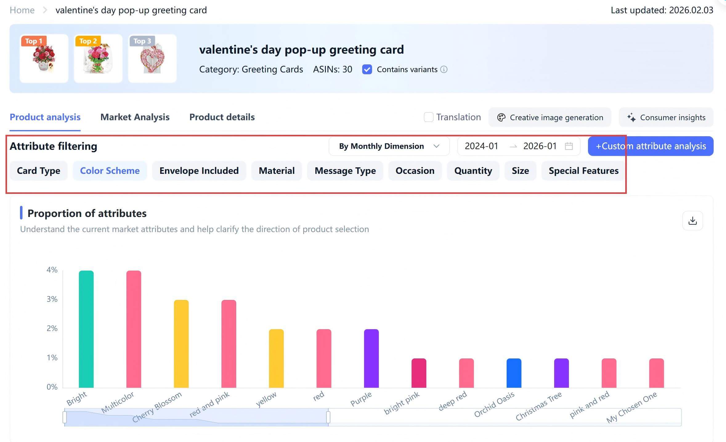 Stop relying on gut feelings and start looking at what the market is actually paying for. Use the Shulex VOC [Product Analysis] tool to scan the Valentine’s Day card category and identify current high-performers. Is the trend leaning toward classic heart designs? Are customers favoring matte over glossy finishes? Which color palettes are dominating the charts right now?